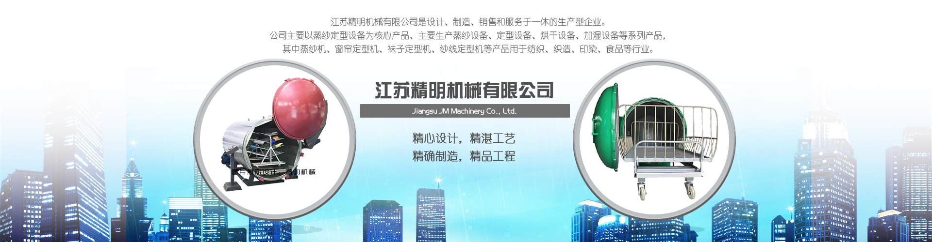 江蘇精明機(jī)械有限公司是設(shè)計(jì)、制造、銷售和服務(wù)于一體的型企業(yè)。公司主要以蒸紗定型設(shè)備為核心產(chǎn)品、主要蒸紗設(shè)備、定型設(shè)備、烘干設(shè)備、加濕設(shè)備等系列產(chǎn)品,其中蒸紗機(jī)、窗簾定型機(jī)、襪子定型機(jī)、紗線定型機(jī)等產(chǎn)品用于紡織、織造、印染、食品等行業(yè)。主要經(jīng)營(yíng)包括:1、蒸紗設(shè)備:蒸紗機(jī)、蒸紗箱、蒸紗缸、蒸紗鍋、蒸紗小樣機(jī)等2、定型設(shè)備:窗簾定型機(jī)、襪子定型機(jī)、圍巾定型機(jī)、手套定型機(jī)、紗線定型機(jī)、低彈絲定型機(jī)、丙綸絲定型機(jī)等3、烘干設(shè)備:布料烘干機(jī)、拉幅烘干機(jī)、染整烘干機(jī)等4、加濕設(shè)備:棉紗加濕機(jī)、氣流紡?fù)布喖訚?..